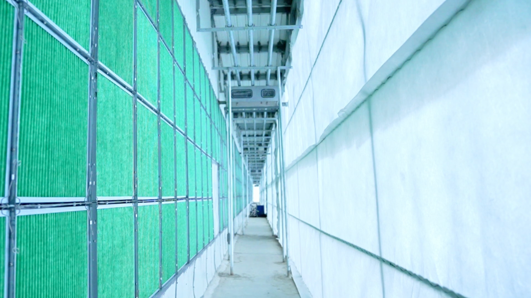 进风口处,四层空气过滤系统正在对进入猪舍的空气进行层层过滤。受访者供图