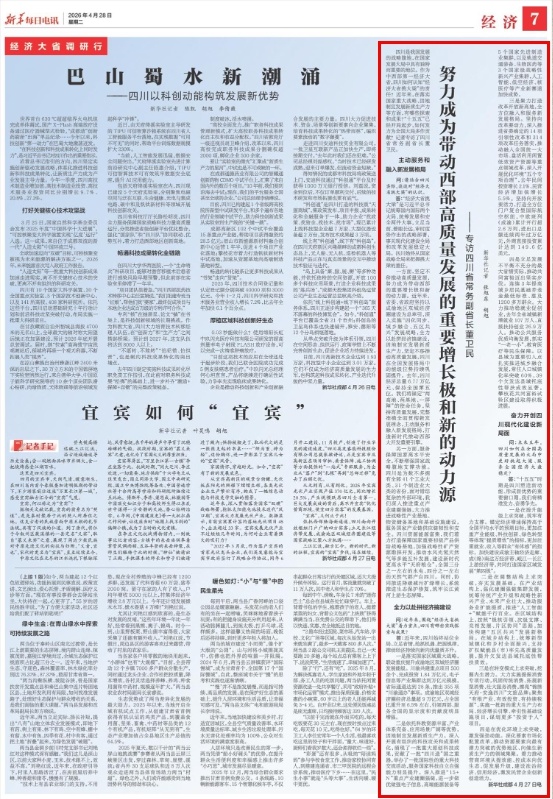问:近年来,围绕“经济大省挑大梁”着力重点,四川有哪些实践探索与成果?