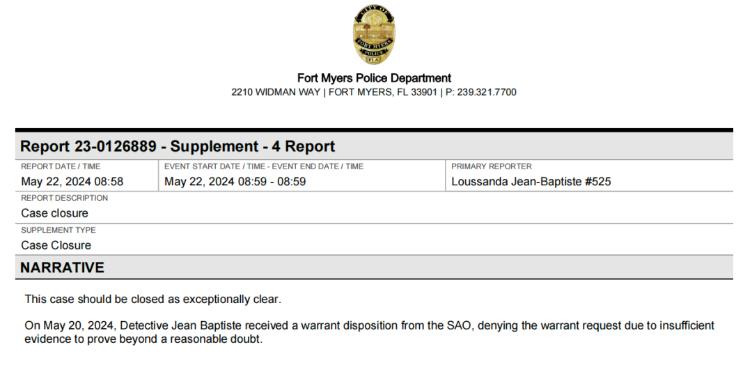 据知情人向记者透露,该女性曾于2023年12月在当地警局报案,2024年5月20日,当地州检察官办公室因证据不足驳回逮捕令申请,警方于2024年5月22日正式结案。而后,上述女性仍继续诉诸法律。