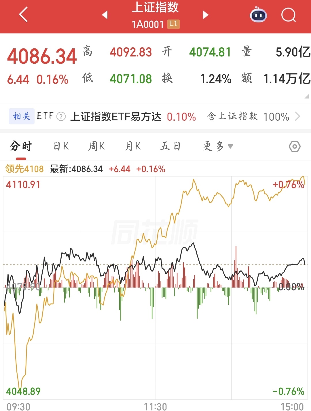 指数表面温吞,内里却藏着“秘密”。其一,高低切换节奏加速,代表中小盘个股的黄线午后持续走高,大幅领先白线,个股赚钱效应扩散,全市场超3200只个股收涨。其二,科创50指数强势领涨,全天跳空高开高走,单日大涨3.76%,成为当日市场最强风向标。而带动科创板块走强的核心力量,正是全面爆发的半导体赛道。