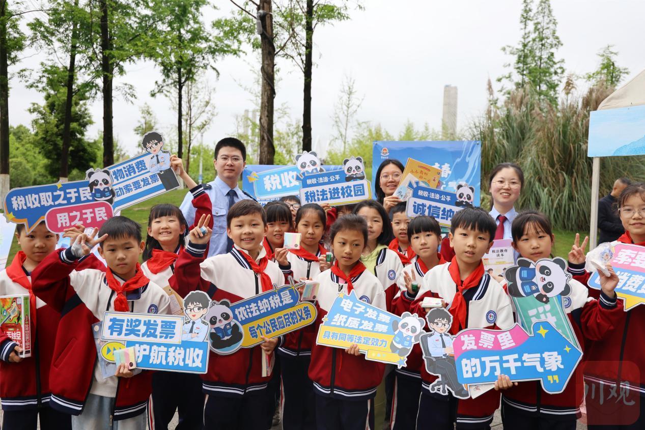 遂宁税务工作人员为学生开展普法宣传活动现场