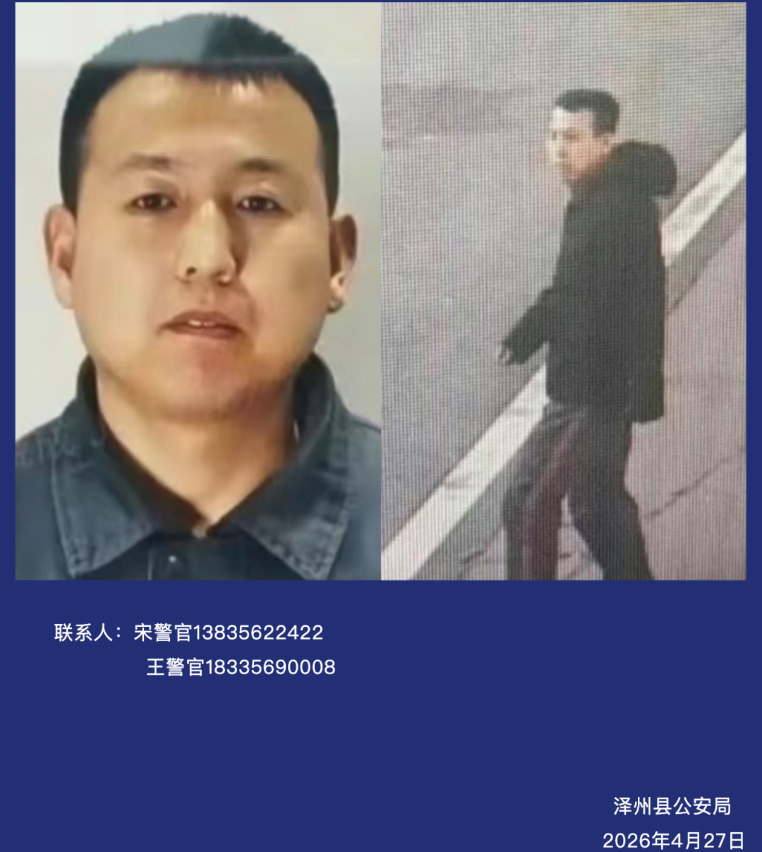 “平安泽州”微信公号4月27日,山西泽州县公安局发布协查通报: