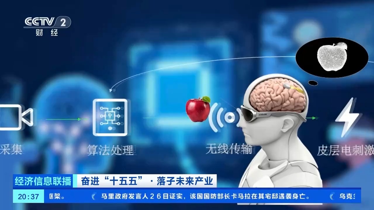 除了帮助运动障碍患者重建与物理世界的连接,脑机接口也在重塑感官。画面中这款脑机接口视觉重建产品,通过植入大脑视觉皮层的电极,将体外摄像头采集的画面转化为电信号,直接刺激大脑形成光感与视觉感知,让盲人重新“看见”光影轮廓。