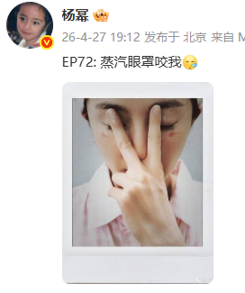 杨幂的微博一发出,不少网友都慌了,说再也不敢戴蒸汽眼罩睡觉了……