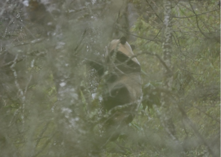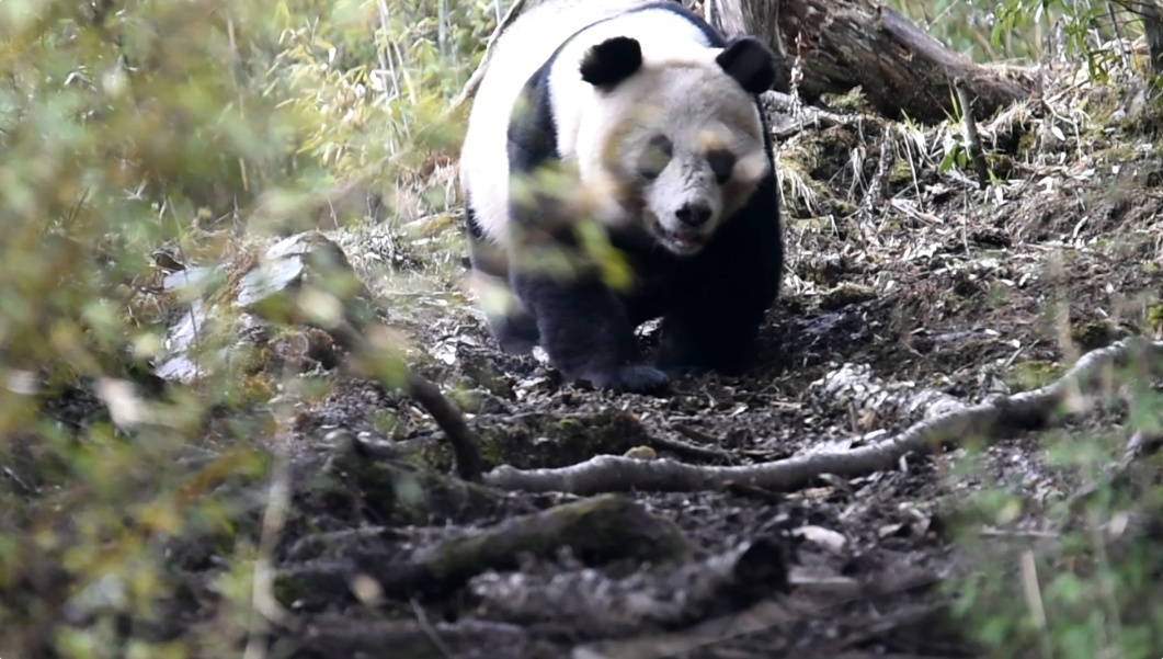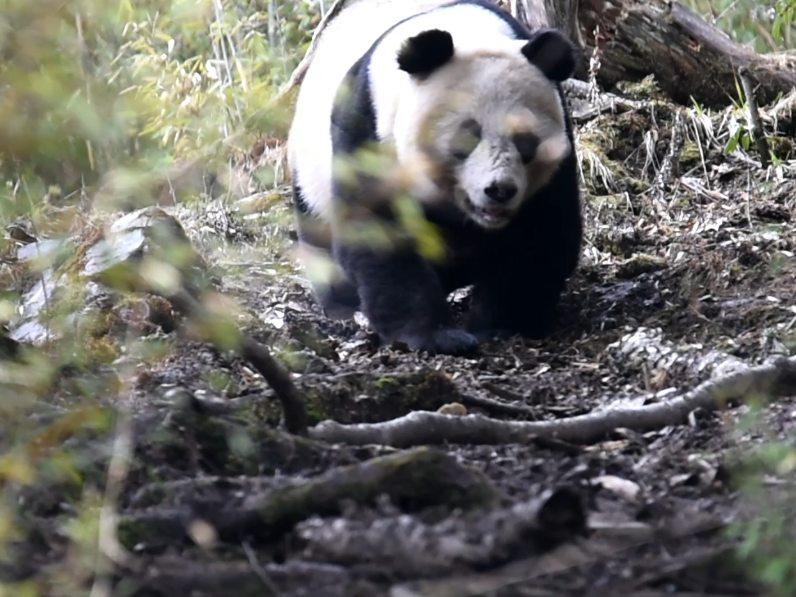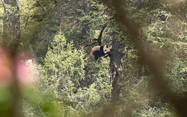 14时12分左右,在针阔混交的生境中,余长明与这只大熊猫成功相遇。近距离的接触让他得以清晰观察到大熊猫的状态。