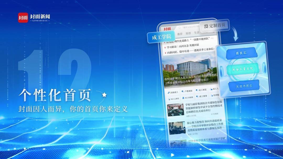 以成都工业学院为例,师生选择该校首页后,每次进入封面新闻客户端,首页频道自动为“成工学院”,不仅有封面成工、产教观察、成功视觉、成工人物等内容专区,分门别类展示校园新闻和行业信息,还有成工云课堂、成工同窗情、成工赛事、培训服务等功能专区,为学校教育教学、赛事培训等具体工作提供支撑。专属频道之外,客户端其他频道和功能均正常开放,让你拥有专属空间的同时,随时直通广阔世界。