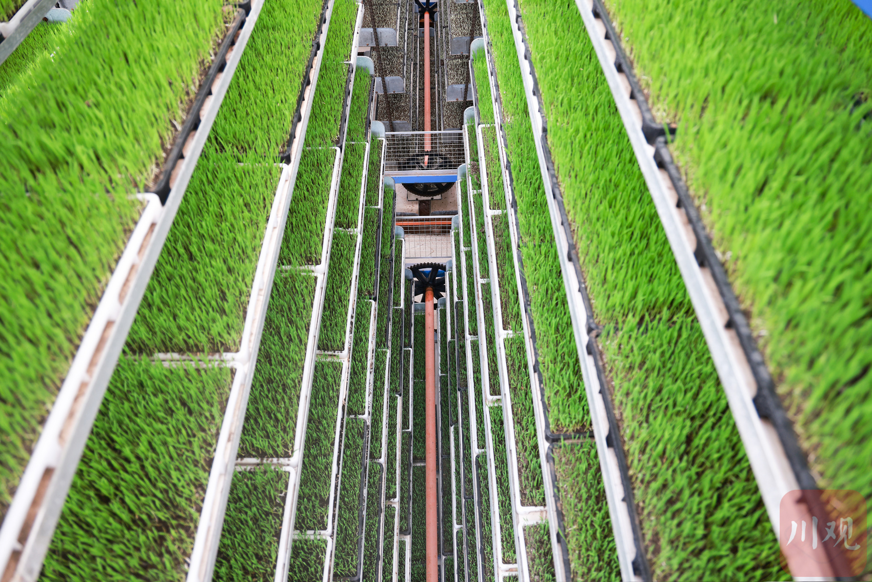 4月21日,遂宁市蓬溪县文井镇青龙咀村,禧德祥种植专业合作社的智能化育秧中心里,今年的最后一批秧苗已经育好,等待被移栽到稻田。