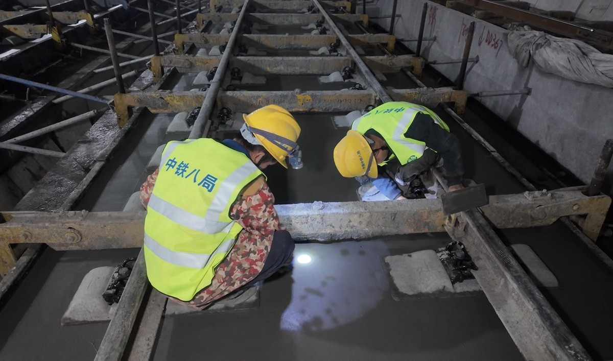 中铁八局负责渝昆高铁川滇段筠连至盐津南段59公里无砟轨道施工任务。项目部常务副经理邓磊介绍,无砟轨道施工是高铁铺轨前的最后一道关键工序,施工精度要求高、工艺复杂,直接影响列车运行平稳性和乘客舒适度。无砟轨道相比传统有砟轨道,稳定性更强、平顺度更高、使用寿命更长、运维成本更低,对钢筋绑扎、模板安装、混凝土浇筑等工序要求精益求精,对成型轨面标高测量精度要求相当严格,均达到“毫米级”。