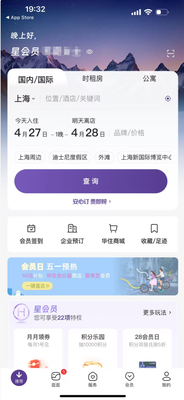 截止到27日晚19:32,记者发现华住会APP已恢复正常,官方暂无回复系统崩溃原因。