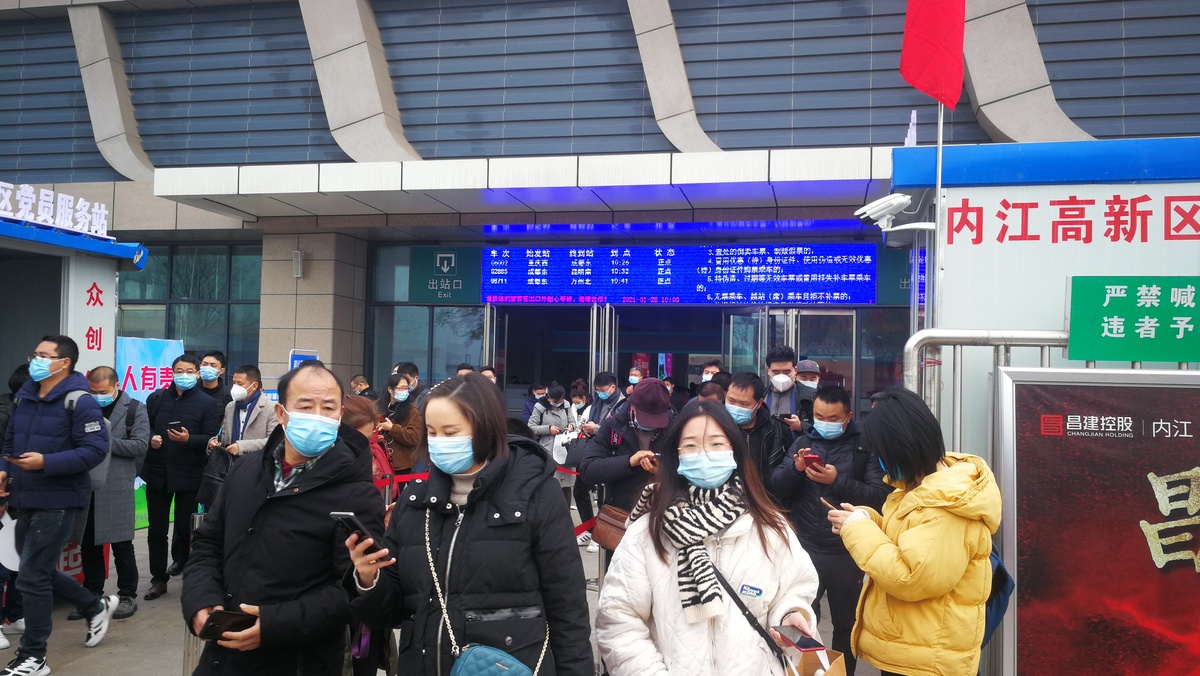 1月28日上午10点32分,从成都东开往昆明南的G2885次列车准时停靠在内江北站。几分钟后,从海口务工回乡的内江市民李先生拉着行李箱走出内江北站出站口,核对了天府健康通信息后车站工作人员给他喷洒了消毒酒精。