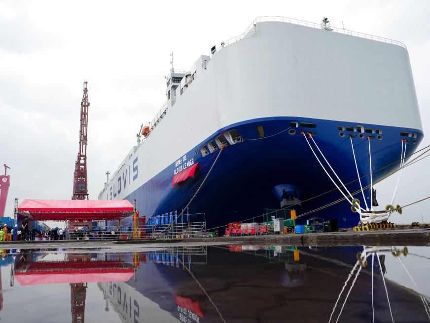 该船单船最大装车量达10800辆,刷新全球同类船舶运力纪录,标志着我国高端船舶制造能力实现新突破,为全球航运业绿色低碳转型提供了“中国方案”。