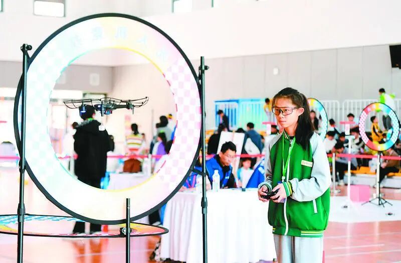 4月26日,以“数智赋能创新未来”为主题的西安市第二十六届学生数字素养提升实践活动市级决赛顺利举行。活动由市教育局主办,全市约3000名中小学生参赛。赛事首次采用双赛场并行模式,设置数字艺术、计算思维、科创实践三大领域共33个赛项,充分展现新时代青少年扎实的数字素养与创新活力。图为选手在无人机星际迷航挑战赛中。(西安报业全媒体记者 雷伟东 摄)