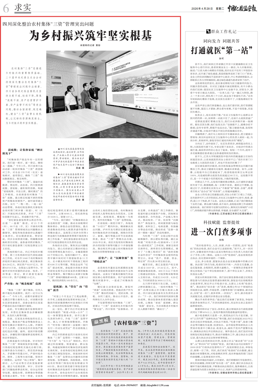 2026年4月28日,《中国纪检监察报》求实版刊发《四川深化整治农村集体“三资”管理突出问题 为乡村振兴筑牢坚实根基》。