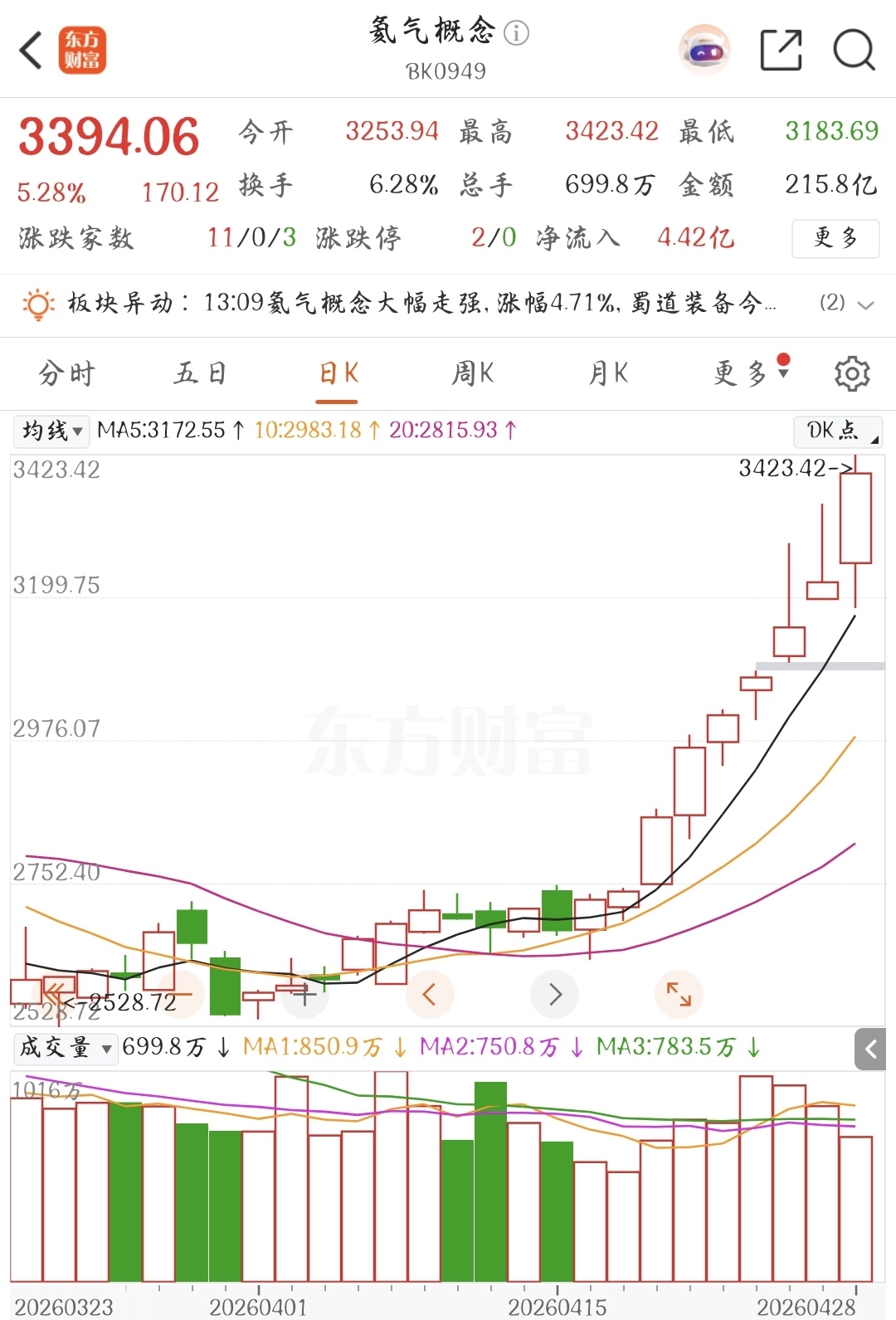 沉闷盘面中,工业气体板块尤其是氦气概念股逆势爆发,为市场增添了一抹亮色。川股蜀道装备强势收获20CM涨停,华特气体、水发燃气等多只个股大幅上涨。