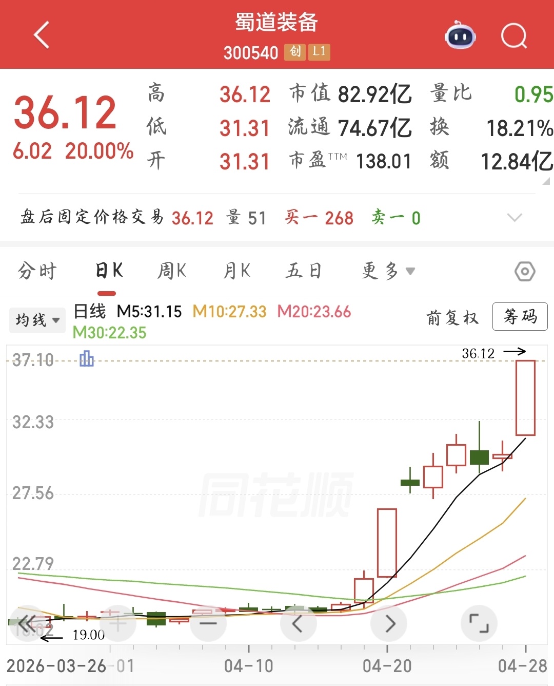 蜀道装备的强势就与其提氦技术密不可分。近日,蜀道装备在内蒙古鄂托克前旗投资建设的LNG-BOG提氦项目,通过天津国际油气交易中心成功完成首次高纯氦气网上竞价销售。公司称,其自主研发投建SDHE-I撬装式提氦装置,从LNG闪蒸气(BOG)中高效提取氦气,总体技术国内领先、能耗指标国际先进。截至收盘,蜀道装备股价达到36.12元/股,4月以来股价涨幅达82.52%。