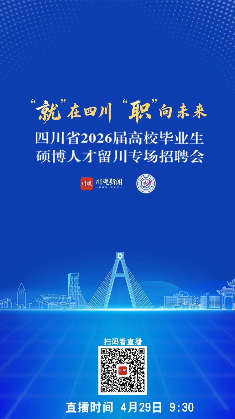 4月29日,上午9点半,“就在四川・职向未来” 四川省2026届高校毕业生硕博人才留川专场招聘会直播来袭!