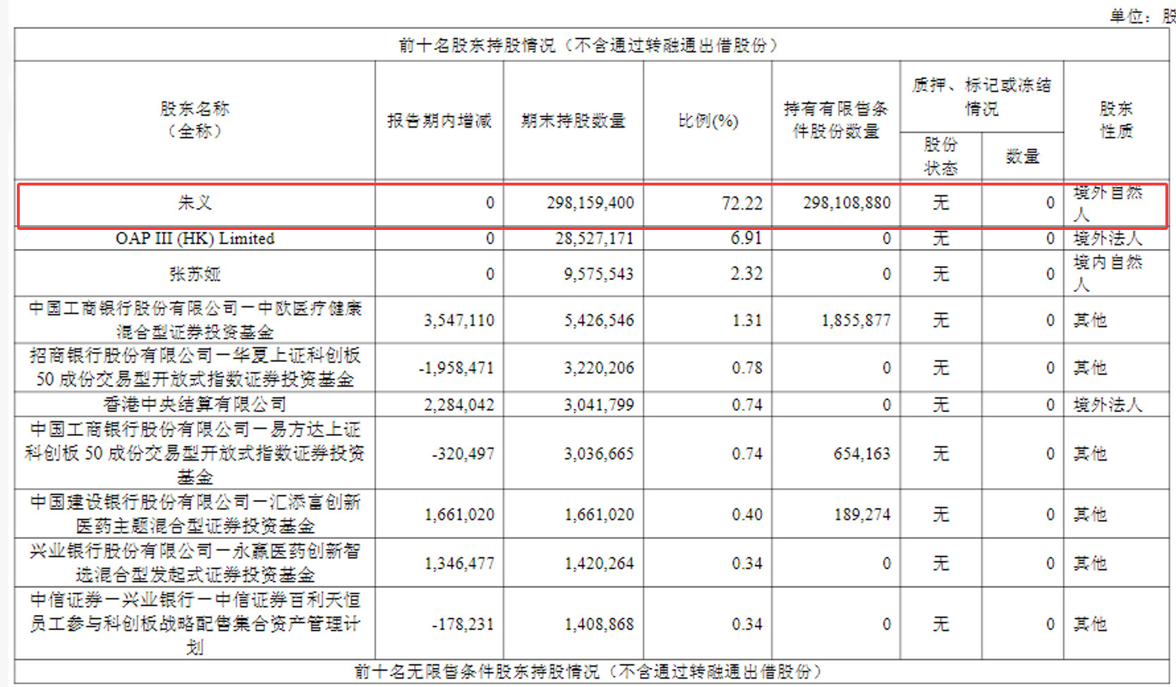 金融投资报记者注意到,2025年百利天恒的股东户数为5761户,前十大股东合计持股3.55亿股,占总股本比例为86.10%。在前十大股东名单中,朱义以72.22%的持股比例高居榜首。