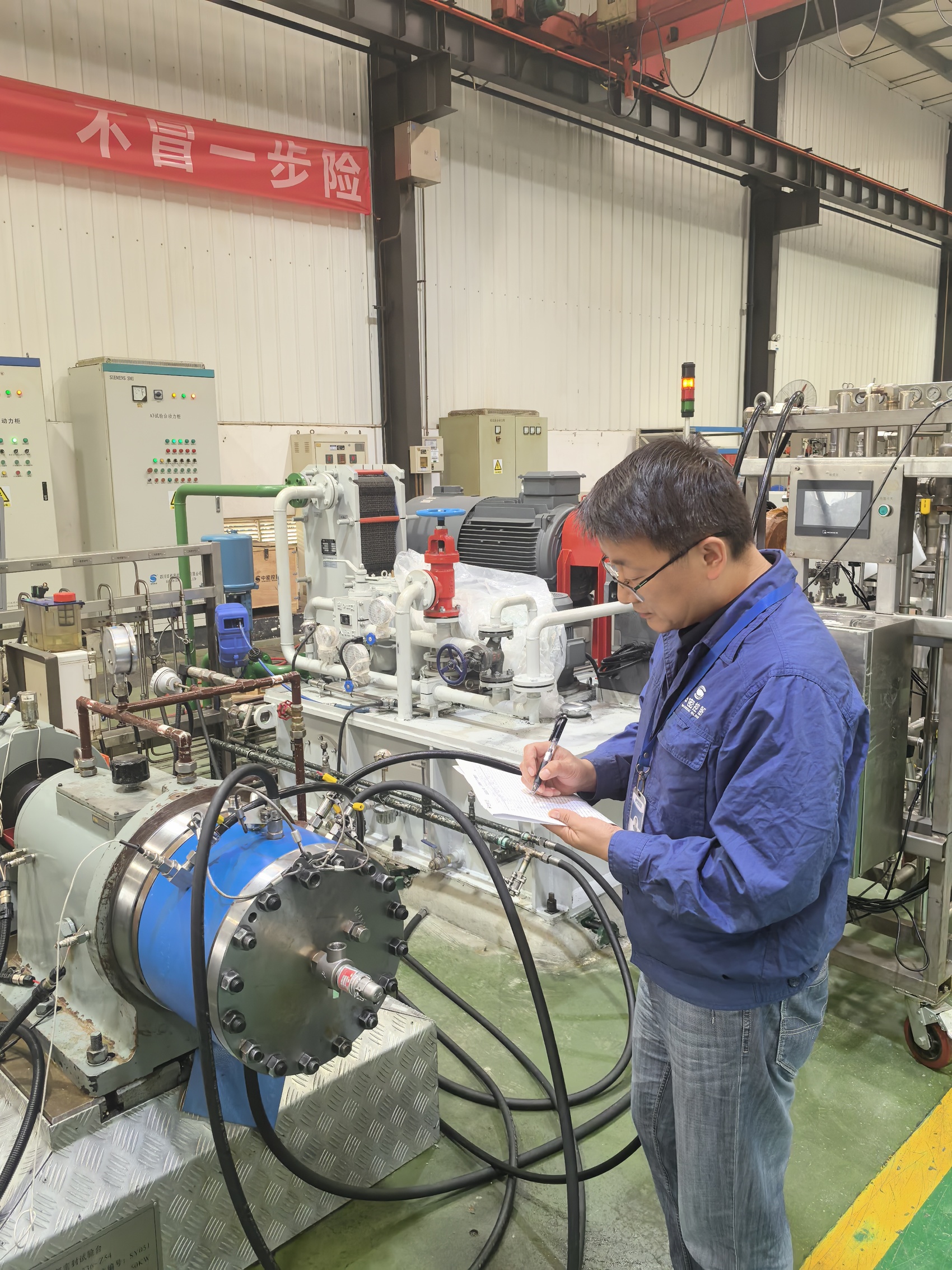张车宁在公司试验室观察干气密封试验情况