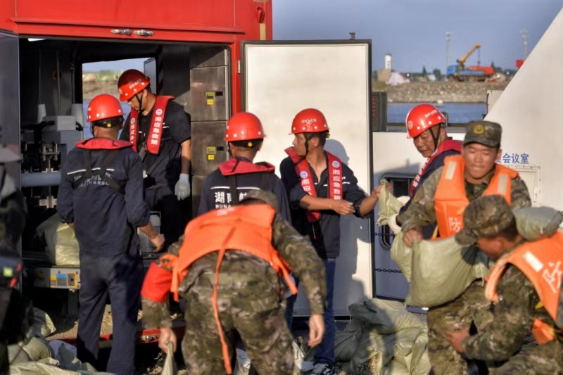 (“长沙号”。)洪峰过境时,“长沙号”是“大力士”——自动化流水线单日可处理2000立方米砂石;紧急会商时,它又是“最强大脑”——作为临时指挥中心,直通应急管理部和省应急厅。“长沙号”的入列,填补了湖南通航水域缺乏大型水上应急抢险船的空白,让工程救援从陆地走向深水,从被动应对走向主动出击。两场硬仗见证“尖刀力量”“防汛,重在‘防’,更在‘快’。”长沙队相关负责人对2024年团洲垸溃堤险情记忆犹新。2024年7月5日17时48分,洞庭湖团洲垸一线堤防决口。17时50分,正在岳阳城陵矶港待命的长沙队接到省应急厅指令。28名队员迅速集结,携带400吨砂石、12万个编织袋,驾驶“长沙号”连夜出征。当晚12时,“长沙号”便抵达溃口现场——成为首支到达的大型专业救援力量,比陆路物资提前数小时。