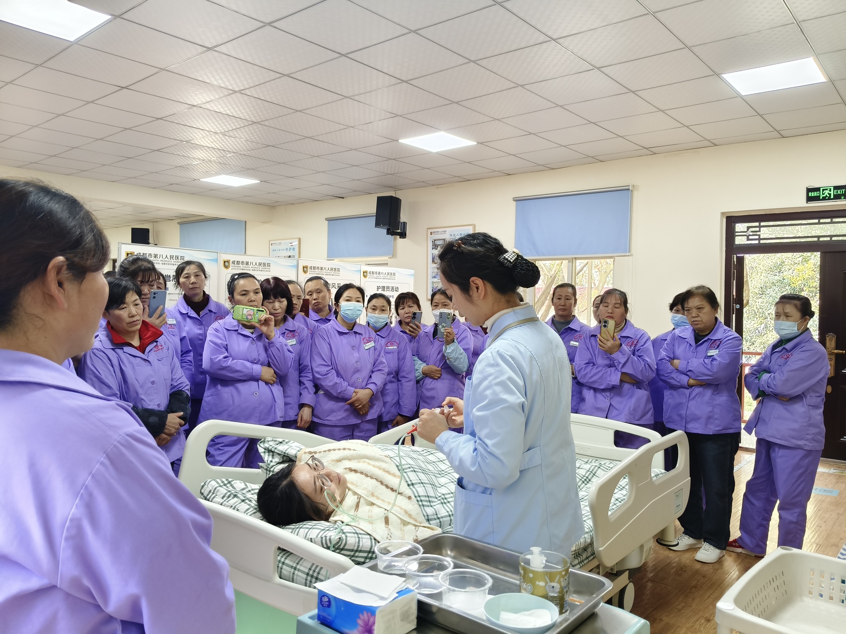 这份引导,让这支平均年龄近50岁的队伍,一直保持着学习的劲头。去年,医院承办了由市卫健委、市民政局、市人力资源和社会保障局、市医疗保障局联合主办的“成都5·21照护日”主题活动,专门设了“照护日”——5月21日,致敬一线照护工作者,提升他们的职业尊严,给予照护人城市礼遇。