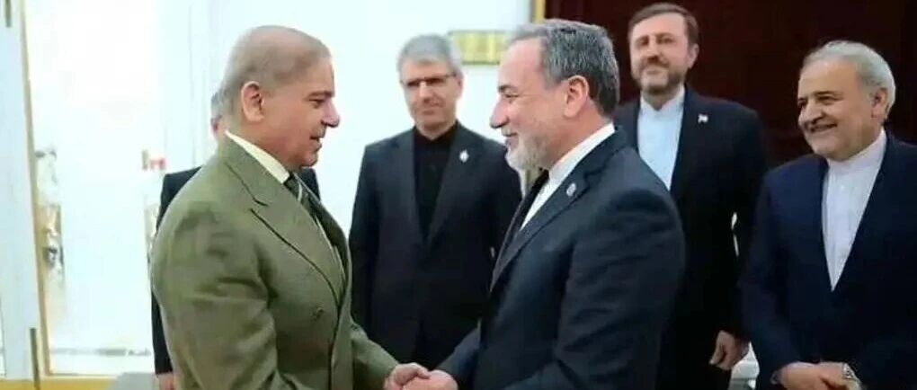 4月25日,巴基斯坦总理夏巴兹(左)在首都伊斯兰堡同伊朗外长阿拉格齐举行会谈。新华社发(巴基斯坦总理办公室供图)