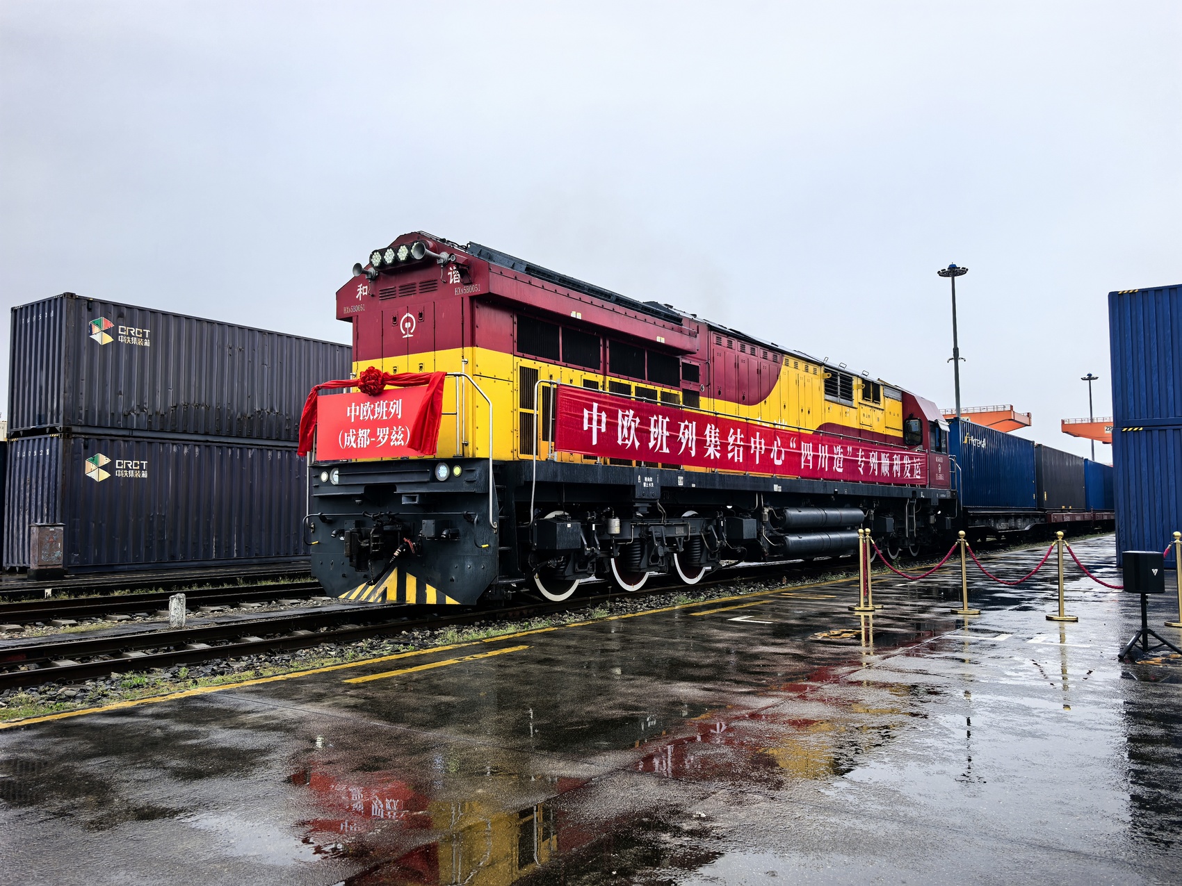 细雨淅沥,汽笛声长鸣。一列载满55个标准集装箱的中欧班列从成都国际铁路港启程,预计最快10天即可抵达波兰罗兹,将“四川造”产品送抵欧洲腹地。