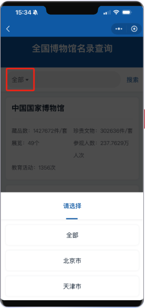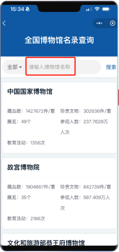 打开【全国博物馆名录查询】服务