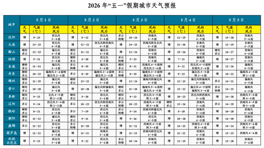 “五一”假期天气预报