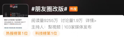 今天,话题“朋友圈改版”冲上微博热搜第一。