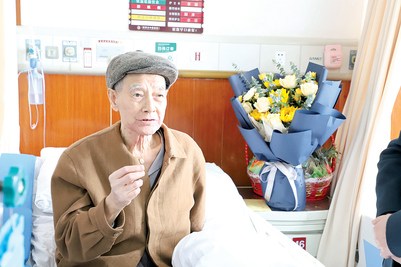 同事们看望邓老,他依然关心着门诊病人。(医院供图)
