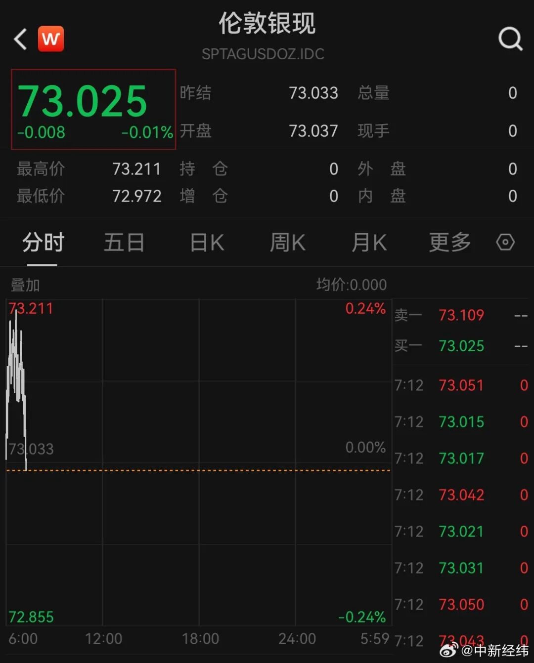 据中新经纬4月29日消息,美东时间28日,黄金白银双双大跌,COMEX黄金期货收跌1.79%,报4609.6美元/盎司;COMEX白银期货收跌2.67%,报73.55美元/盎司。