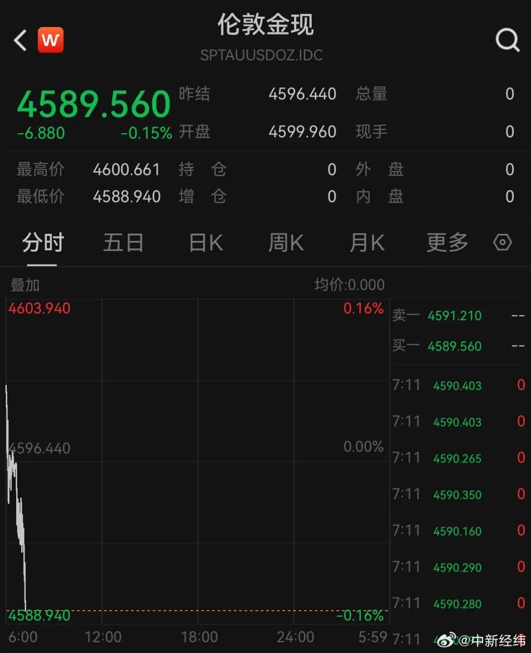 北京时间29日,黄金还在跳水,现货黄金跌破4590美元/盎司,跌0.15%,现货白银继续震荡,于73美元/盎司上下浮动。