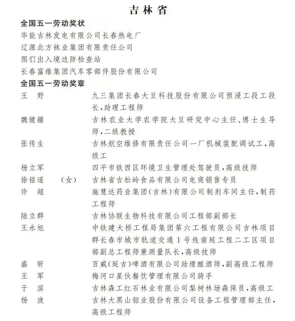 原文标题:祝贺!吉林的TA们,荣获全国五一劳动奖