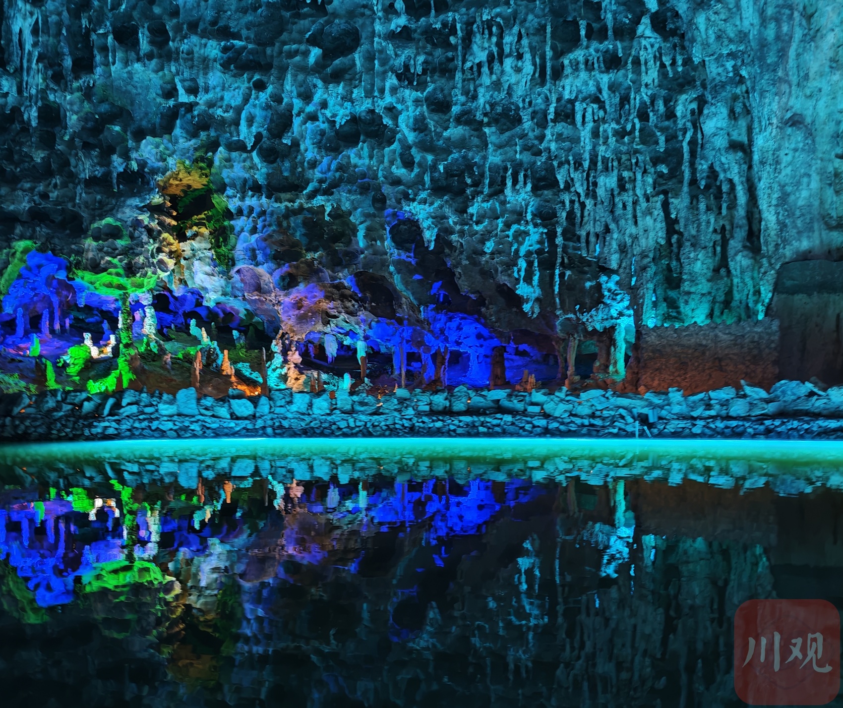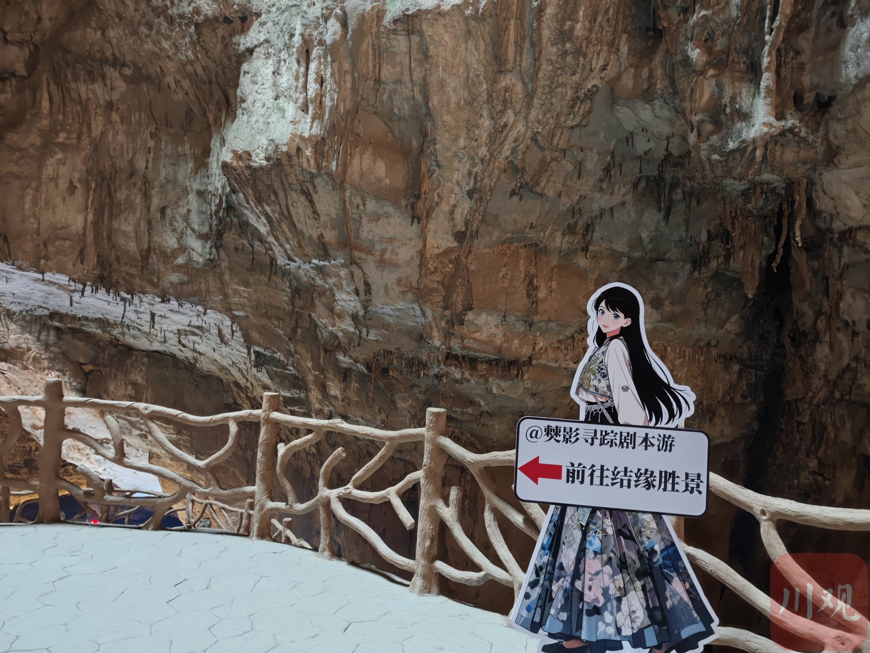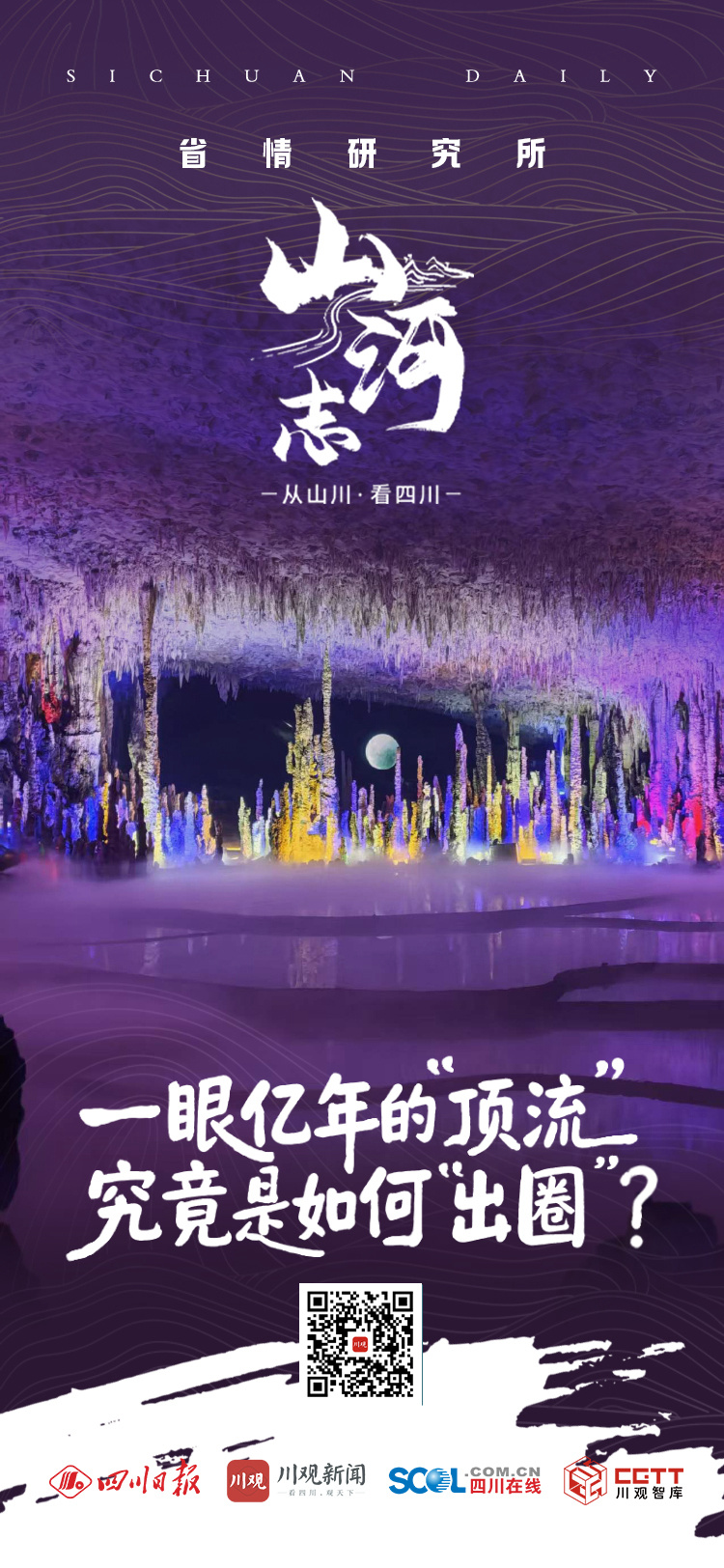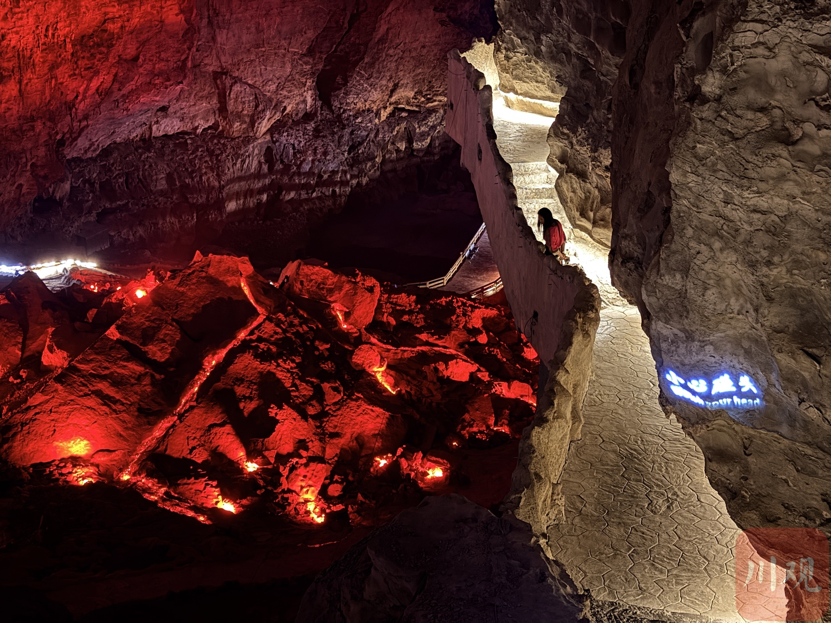 和传统观光为主的景区不同,在兴文石海,在奇形怪状的山洞和峭壁间,记者又走进“奇幻”一幕:景区门口是石海长歌的沉浸式演出海报、若干景点融入剧本杀的场景。溶洞外,有“窝囊”版蹦极等运动体验项目,与自然面对面;溶洞内,浪漫星河等光影,带人进入“时空隧道”,沉浸式感受亿年的美。