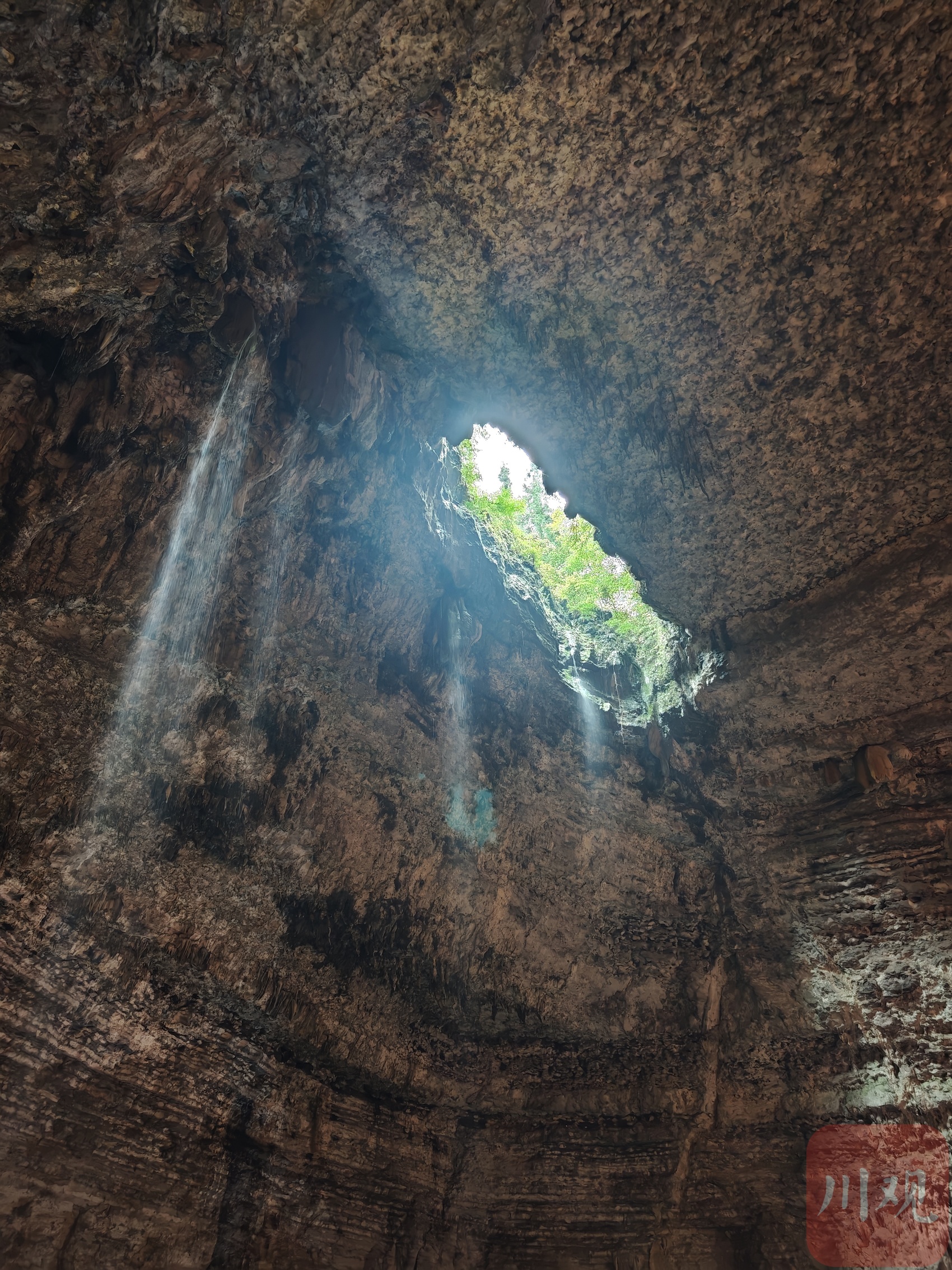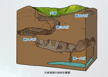 天泉(溶)洞是其中典型代表,空间规模和游览长度均居世界前列,自下而上分为4层。站在洞底,仰望洞顶自然形成的“天窗”,天空好似一只明亮的眼睛,伴随着射进洞中的天光,一股天泉飞流而下。