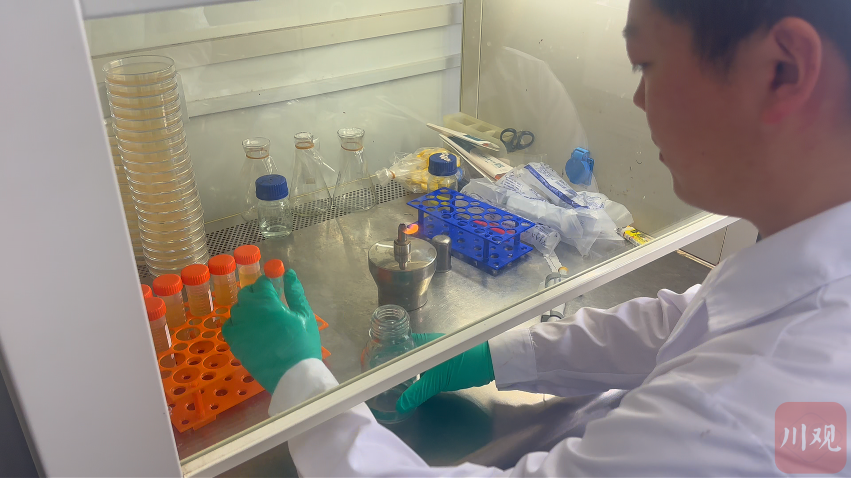 “年入千万”的“00后”在校生,最近以来,这种反差感贯穿了黄楚添的日常生活:一边是实验室里的科研人,在仪器间探寻食用菌培育新技术;一边又是田间大棚里的“农人”,用沾满泥土的双手,将论文写在家乡的田野上。