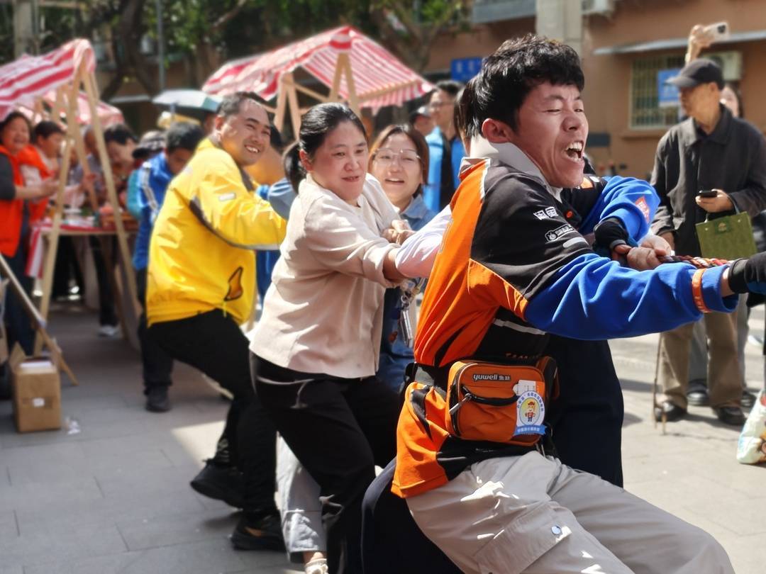最热闹的当数“聚力凝绳·拔河友谊赛”。骑手们按平台自由组队,哨声一响,呐喊声、加油声此起彼伏。一根绳子,拉近了彼此的距离,也拉出了“新就业群体”的凝聚力。