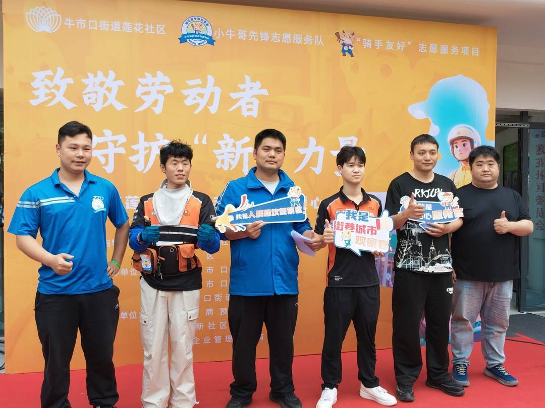 在“五一”国际劳动节来临之际,4月28日下午,在成都市锦江区牛市口街道莲花社区党群服务中心门前,一场以“致敬劳动者 守护‘新’力量”为主题的“小牛哥”骑手友好社区暖心活动上演。外卖骑手、快递小哥等新就业群体成为主角,在健康签约、急救课堂、温情集市等一站式服务中感受到“家”的温度。据悉,该活动由锦江区委社会工作部、区总工会指导,牛市口街道党工委主办,牛市口街道总工会、莲花社区党委承办,多家爱心单位协办,旨在推动“骑手友好社区”建设走深走实。