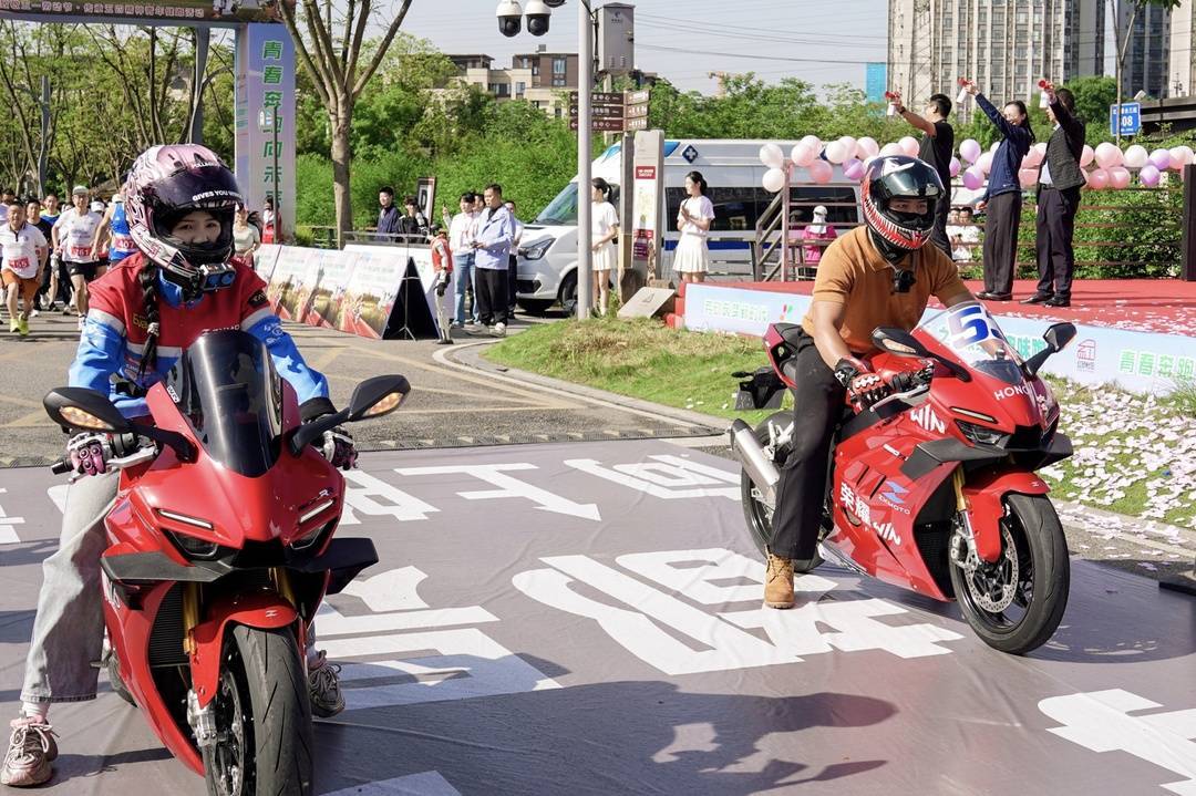 发令枪响前,张雪机车冠军车队率先开道,引擎轰鸣声将气氛推向高潮。随着枪声响起,500余名跑者有序出发。赛道环绕花乡农居景区,途经许燎源现代设计艺术博物馆等多处地标,沿途补给站与志愿者服务站一应俱全,既保障了畅快奔跑,也让选手们沉浸于三圣花乡的人文与自然之美。