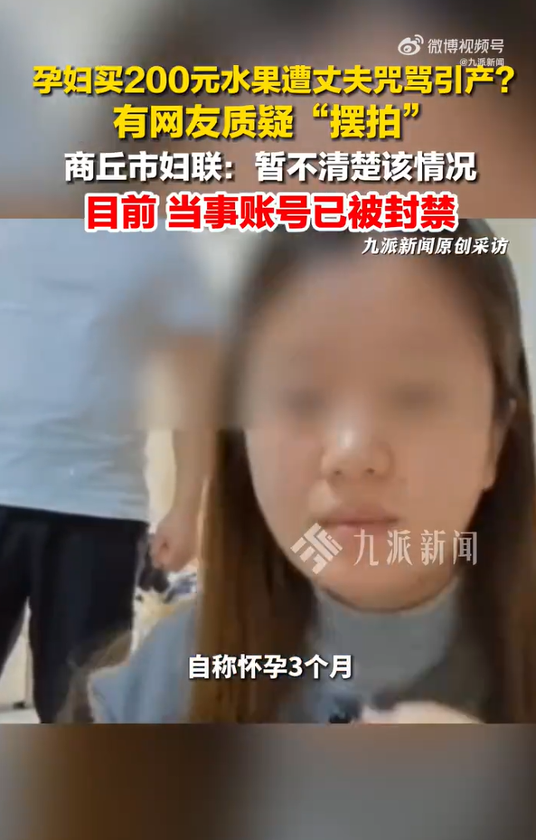 近日,河南一账号发布视频自称怀孕3个月,因孕吐严重、吃不下饭,花200元买水果遭丈夫严厉指责。