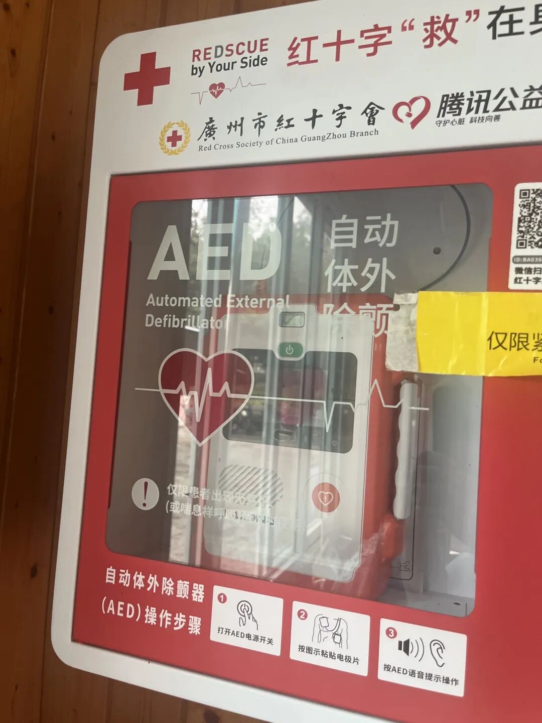 此外,在燕塘地铁站内,也存在AED贴片过期情况,经与相关人士协调,也顺利得到解决。但部分“生病”的AED设备,因记者无法联系责任方,目前仍尚未“治愈”:如广州南洋理工职业学院医务室内AED,电极片包装袋已撕开,未及时更换;南沙服务区内AED,电极片丢失;广州雕塑公园,一放置于公园停车场旁保安亭内的AED设备,已处于过期状态……但由于记者也无法联系到相关负责人,目前问题均未被解决。