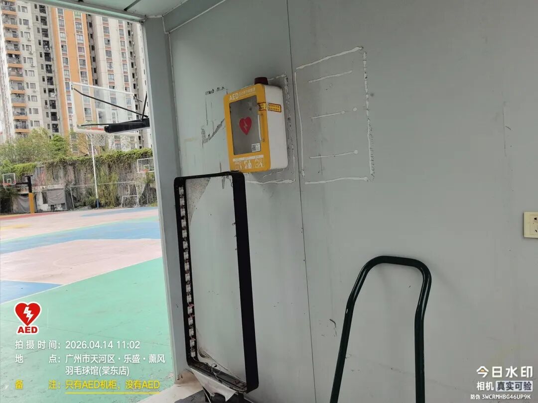 棠东羽毛球馆旁AED机身不翼而飞