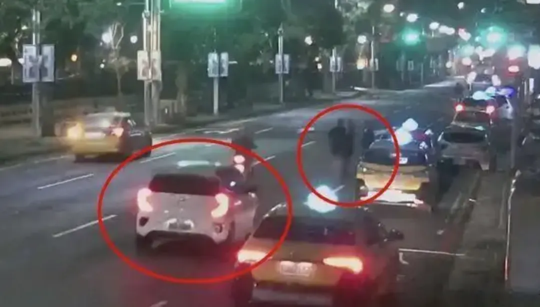 通过事发监控画面可以看到,当时,有3名出租车司机将车停在路边,3人站在车旁。此时邱军驾驶车辆,竟直接朝3人撞上,肇事后逃逸。