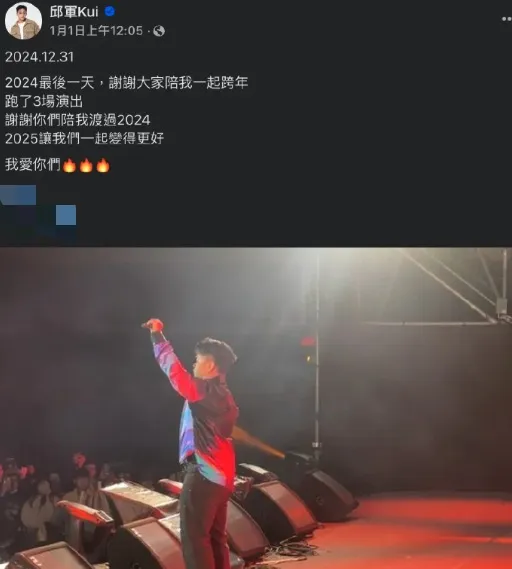 令网友气愤的是,在肇事逃逸后,邱军还于2024年12月31日照常参加了3场跨年活动,甚至在社交平台发文:“2024最后一天,谢谢大家陪我一起跨年,跑了3场演出,谢谢你们陪我度过2024,2025让我们一起变得更好。”