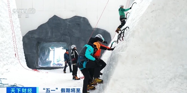 攀冰原本属于典型的小众极限运动,如今它被拆解为可体验、可复制的产品,在这里,冰壁高度6到12.5米,难度分级设计,既降低门槛,又保留挑战感。这类项目在社交平台持续升温,目前该场馆“五一”假期的单日预订量大幅攀升,已接近满负荷运行。