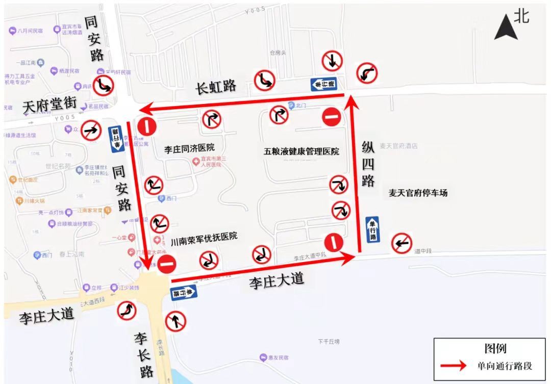 ②纵四路(李庄大道至长虹路段)由南向北单向通行;