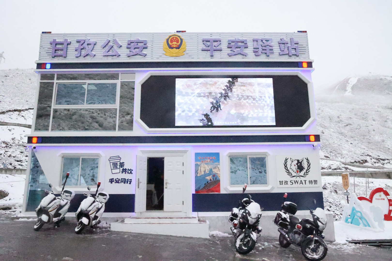 作为甘孜公安升级打造的试点驿站,这里将与折多山观景台、贡布卡1号桥的另外2个驿站一同,组成折多山上的“平安三角”,在假期正式亮相。
