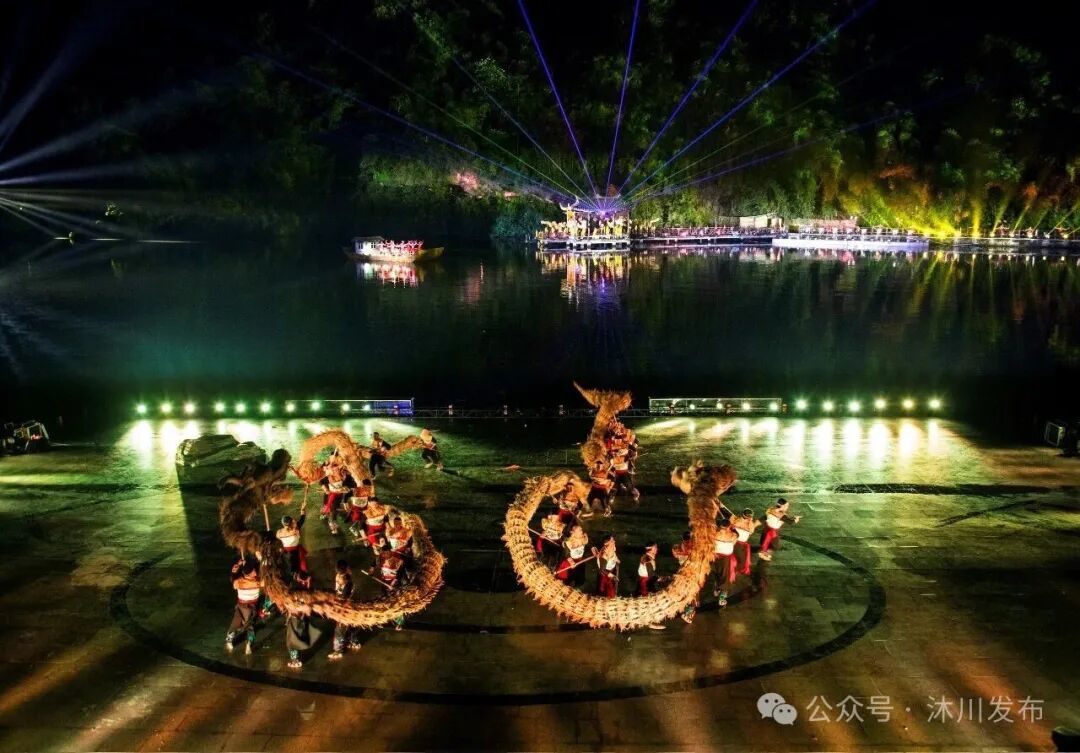 内容:《乌蒙沐歌》是沐川县自编自导自演的原生态山水实景剧,时长70分钟,融合生态文化、历史文化、民俗文化、农耕文化等地方特色文化元素,借助现代声光科技,将沐川的生态魅力、历史遗韵、民俗风情尽展于山水之间。剧目包括风云沐源川、诗韵沐川、茶马古道、婚俗遗风、舞动金秋、美在沐川等六个篇章。
