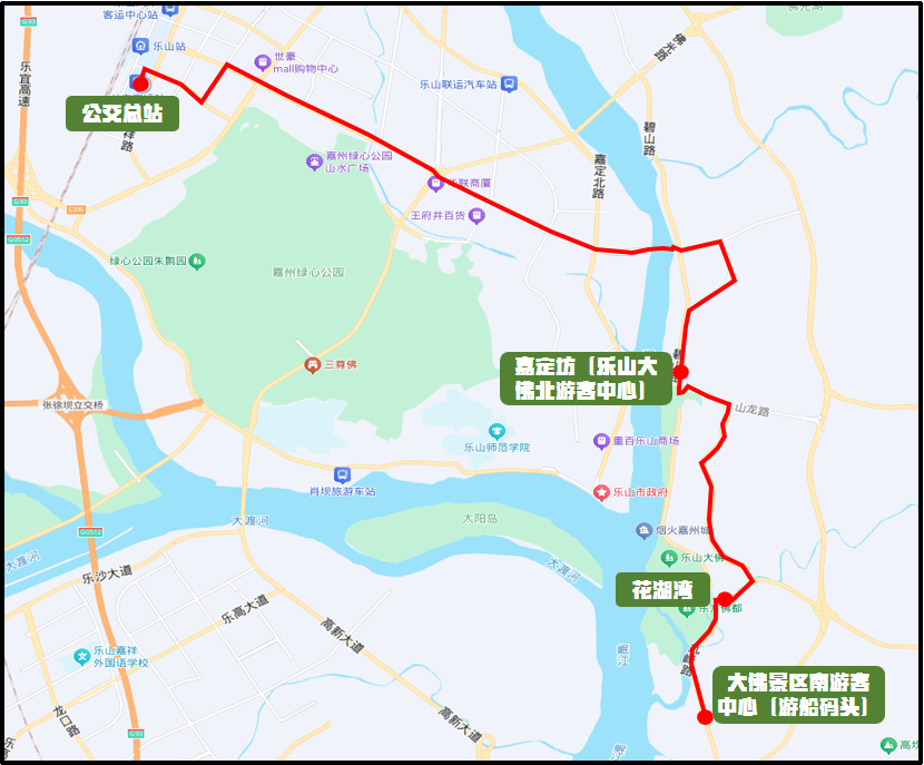 (1)起讫站点:公交总站—乐山大佛南游客中心(游船码头)