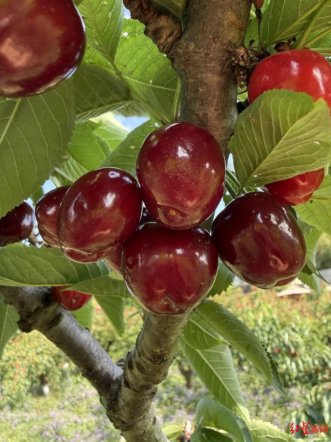 樱桃采摘渐次退场的同时,本地车厘子“补位”。在青白江区阿智农场,一颗颗硕大饱满的车厘子挂满枝头,早熟品种已开始采摘。